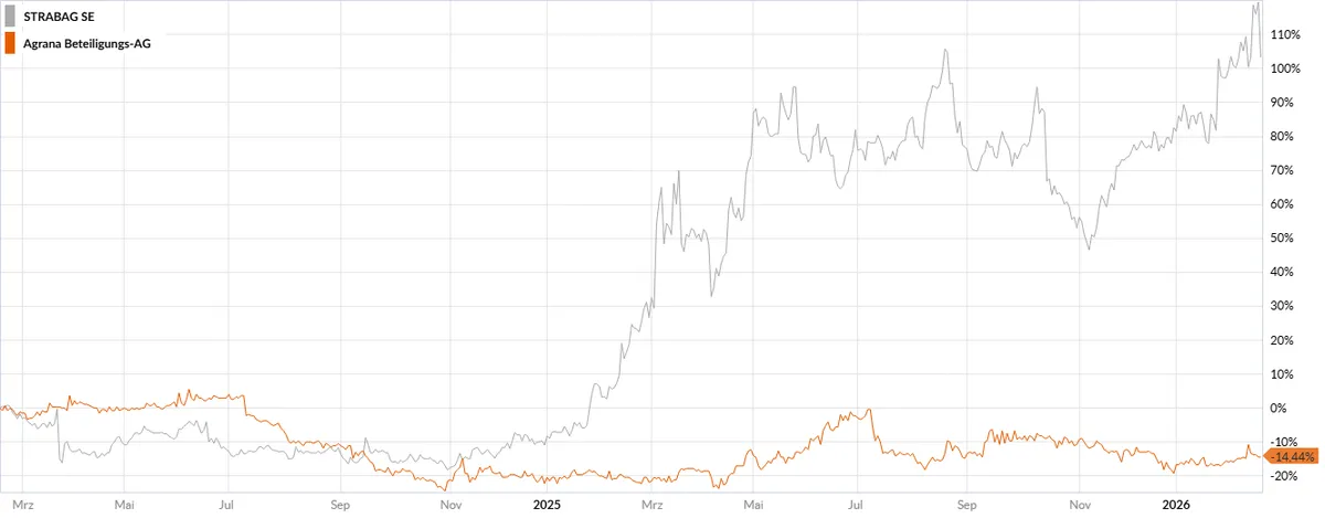 Dass die Aktie der Strabag SE am Donnerstag um mehr als 7,5 Prozent abfiel, hat einen Grund: Die Raiffeisen Holding Niederösterreich-Wien hat rund 2 Millionen Aktien auf den Markt gegeben. Laut Informationen von Bloomberg sollen die Anteile zu 86,5 Euro je Aktie angeboten worden sein – also deutlich unter dem Mittwochkurs. Für die Raiffeisen Holding Niederösterreich-Wien hat sich die zwischenzeitliche Aufstockung – um die Anteile des sanktionierten russischen Oligarchen über Rasperia unter 25 Prozent zu drücken – aber gelohnt (siehe Chart der letzten zwei Jahre). Zumindest für den Streubesitz und den Handel ist der Verkauf ein gutes Zeichen – hier mehr lesen.